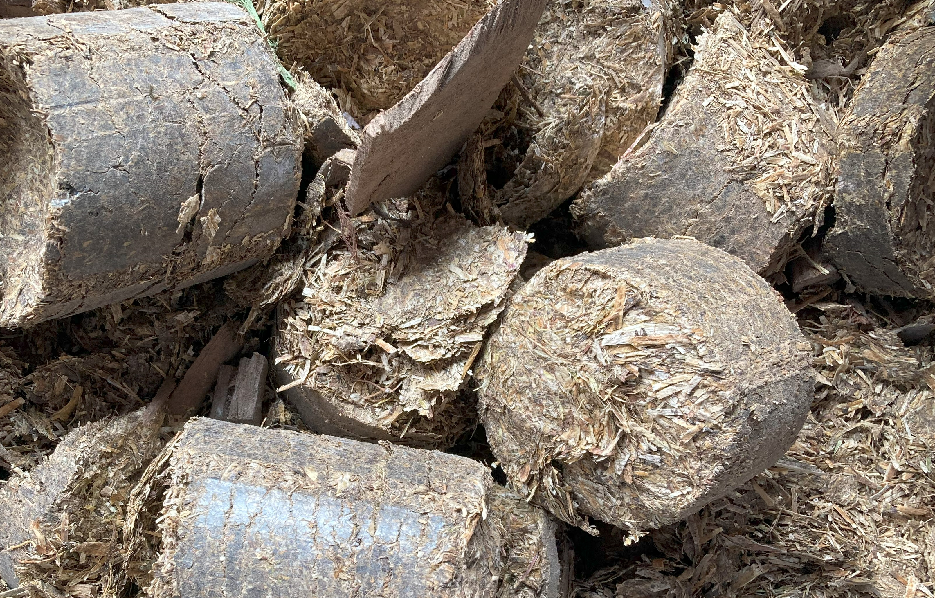 アイカ・ラミネーツ・インディア社(インド)では、使用エネルギーの約90%をバイオマス燃料から得ており、石油燃料の使用量を他拠点に比べて大幅に低く抑えています。2024年からは従来使用していた木片から、含水量が少なく燃焼効率の高いブリケット燃料に切り替えました。