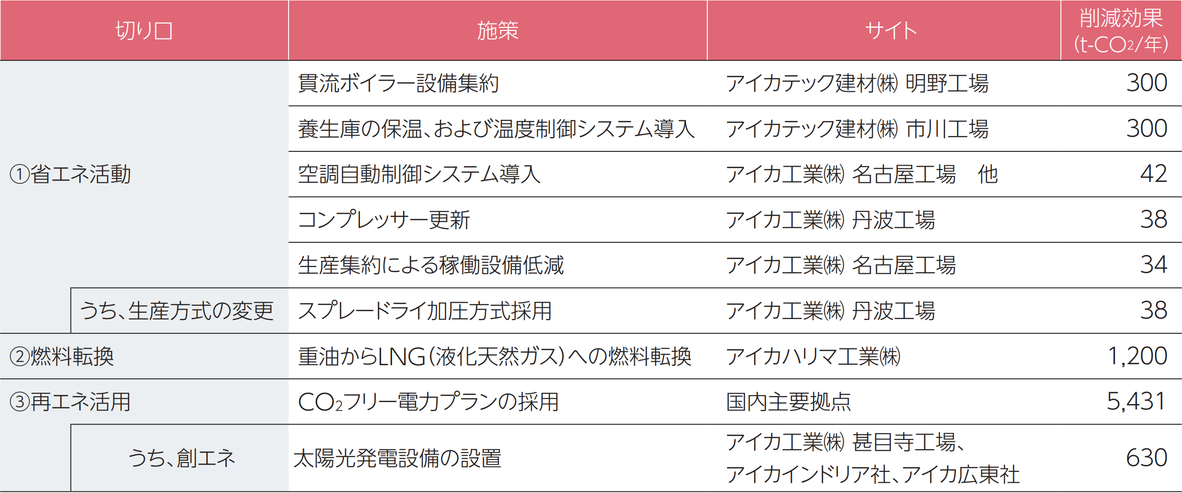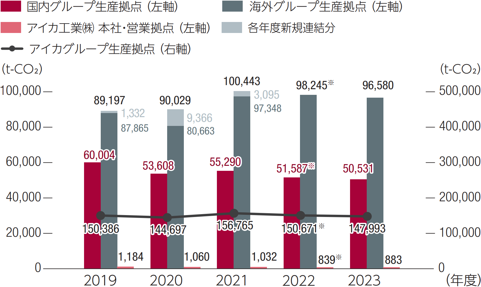 対象範囲:アイカグループ生産拠点、アイカ工業㈱ 本社・営業拠点