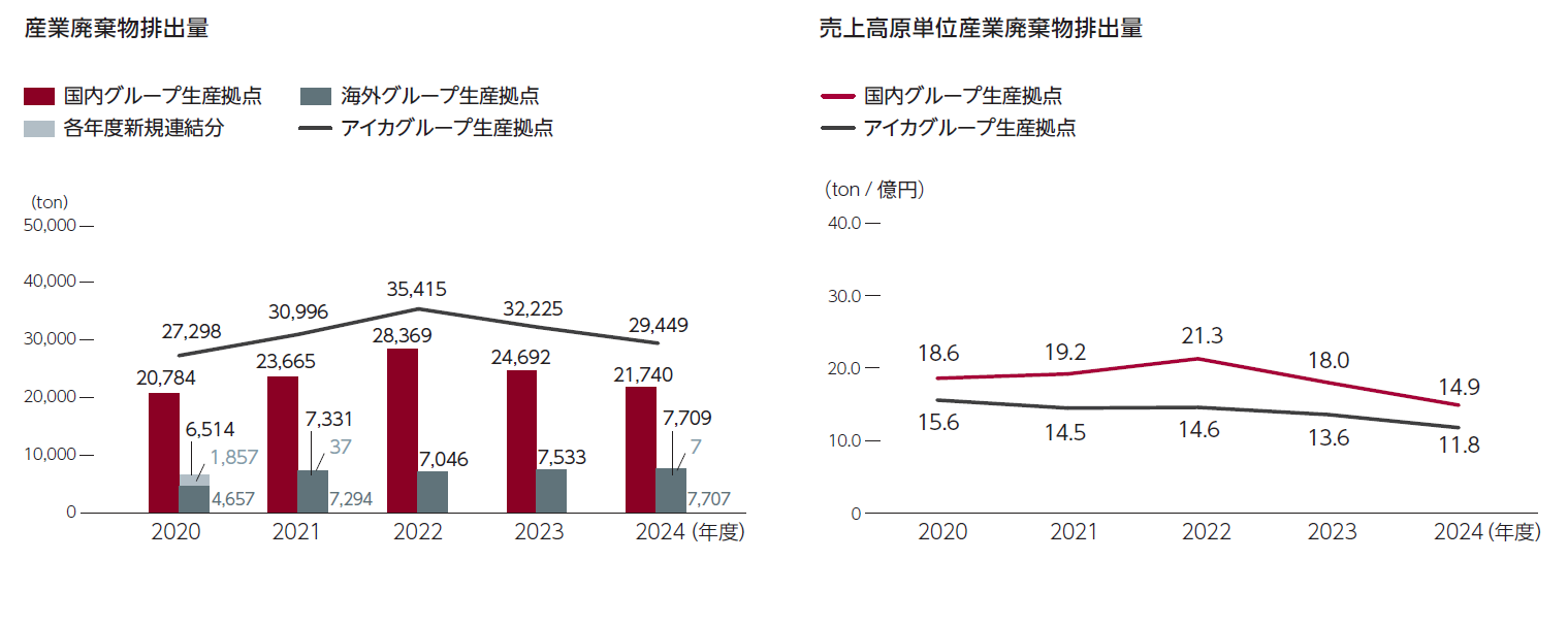 1998年から産業廃棄物の削減に向けた具体的な取り組みを開始し、グループ全体の重要な環境指針としています。廃棄物の減容化や製品不良率の改善などの発生量低減に向けた活動だけでなく、循環型社会の形成に向けて廃棄物のリサイクルも積極的に実施しています。商品開発においては効率的な原材料の利用を考慮した商品仕様を採用しているほか、包装・梱包材の軽量化も推進するなど、投入資源の削減にも取り組んでいます。