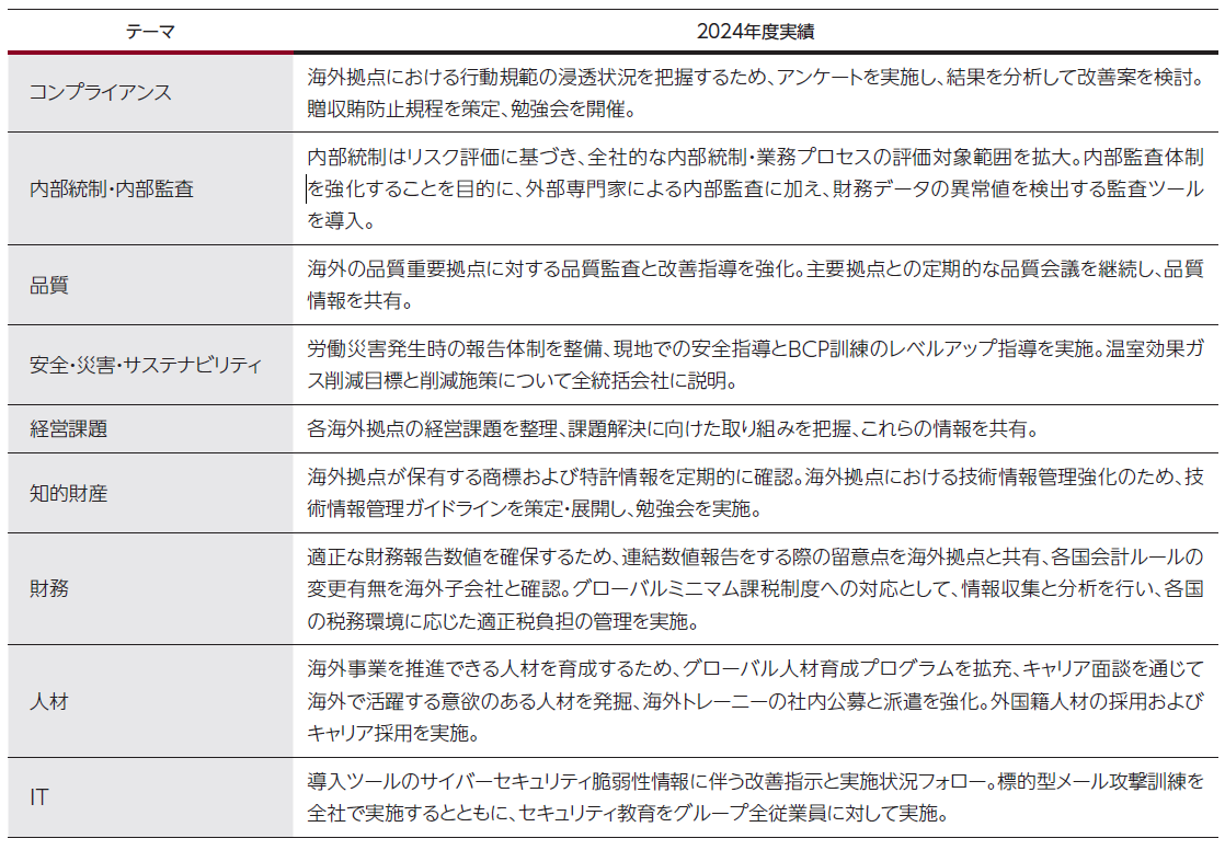 海外グループ会社のガバナンス強化