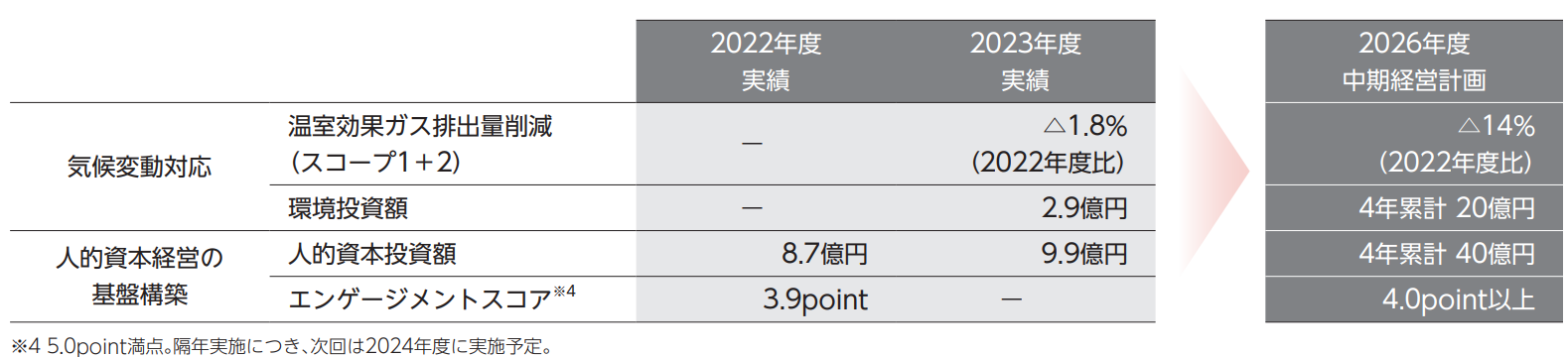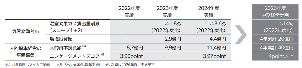 中期経営計画では7つのマテリアリティを掲げて取り組みを進めていますが、特に注力している「気候変動対応」と「人的資本経営の基盤構築」について触れていきたいと思います。