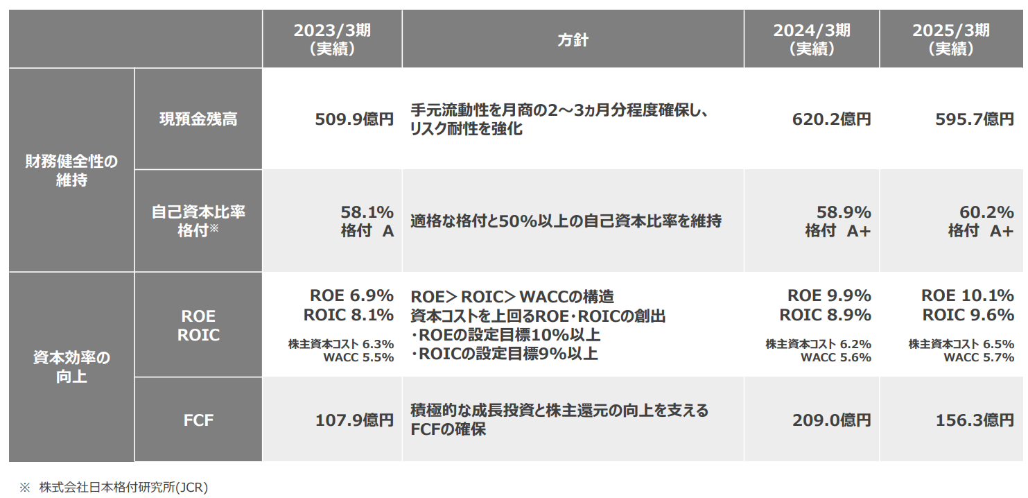 成長投資については、国内事業では競争優位性を高めるための設備投資を、海外事業では需要の強い国での事業拡大やM&Aを進めていきます。株主還元については、安定的な配当を基本としつつ、事業の成長段階や財務状況、そして外部環境の変化に応じて、自社株買いなども含めた最適な還元策を柔軟に検討します。ステークホルダーの皆さまとの対話を重視し、いただいたご意見を真摯に受け止めながら、より魅力的な資本政策を継続的に実現していきます。株主の皆さまの中には、当社の株式を長期で保有いただいている方々も多く、非常にありがたいことと感謝しています。お預かりした大切な資本を有効活用し、利益成長を実現することで、今後も企業価値向上に努めます。
