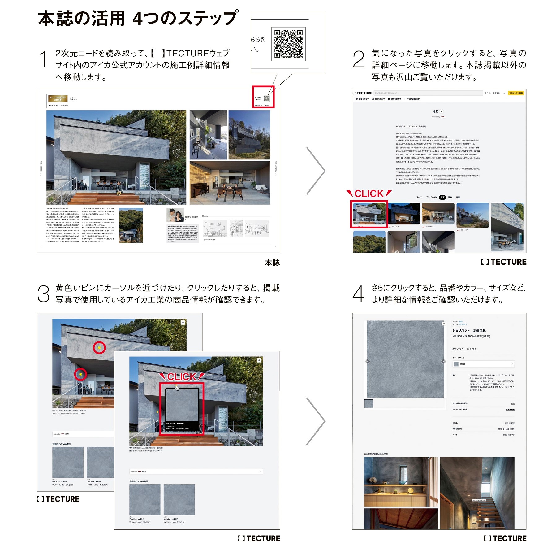 今回は、JR東日本および同社グループとの共同研究で誕生した新工法で天井にメラミン不燃化粧板「セラール」が施工された「東京駅構内 グランスタ八重北」や、働くスタッフに安らぎの空間を提供する株式会社ZOZOの物流拠点「7 Gates Lounge」など、約60点の施工事例を掲載します。そのすべてに二次元コードを掲載し、より多くの情報をウェブで確認できる、紙媒体とデジタル媒体のメリットを融合させたハイブリッドタイプの施工事例集にリニューアルしています。スマートフォンなどで二次元コードを読み込むことで、より多くの写真を見ることができ、使用されている製品情報が簡単に確認できます。また、写真に加えて各施設のコンセプトや設計士のコメントなどを掲載しており、雑誌感覚で読みながら、設計・デザインのアイデア探しや建材選定ができる施工事例集としました。