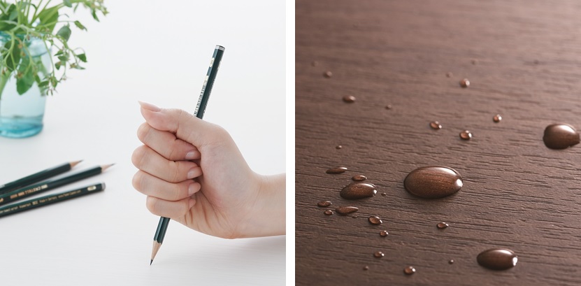 一方、近年は在宅時間が増加するなど人びとの習慣や価値観が大きく変化し、”居心地のよい家づくり”のニーズが高まっています。キッチンなどの水廻りにおいても、インテリアや家具を選ぶように、デザイン性の高いものが求められるようになってきました。上位グレードのキッチンには、突板やモルタル、天然石等の素材を用いた扉が使用されていますが、こまめなお手入れが必要で、経年による変色・変形も懸念されます。